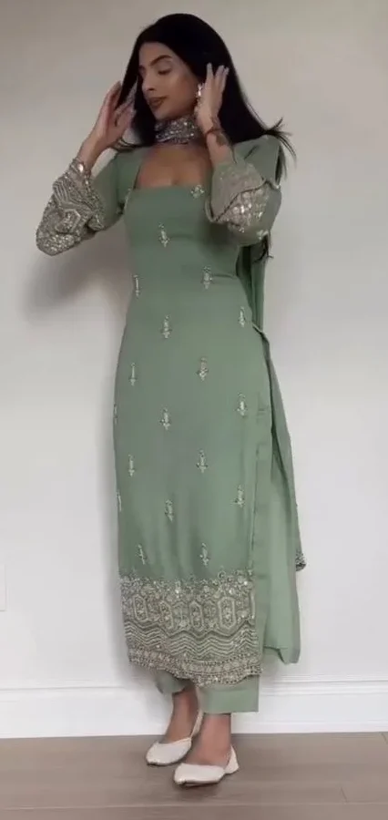 Celebration Ready: Georgette Heavy Embroidery 3 Piece Suit