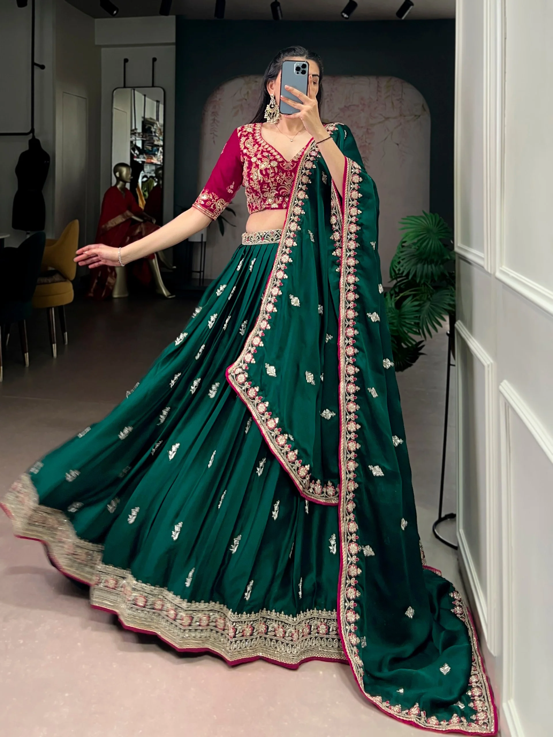 Select options This product has multiple variants. The options may be chosen on the product pagePremium Sequence & Thread Work Satin Silk Lehenga Set