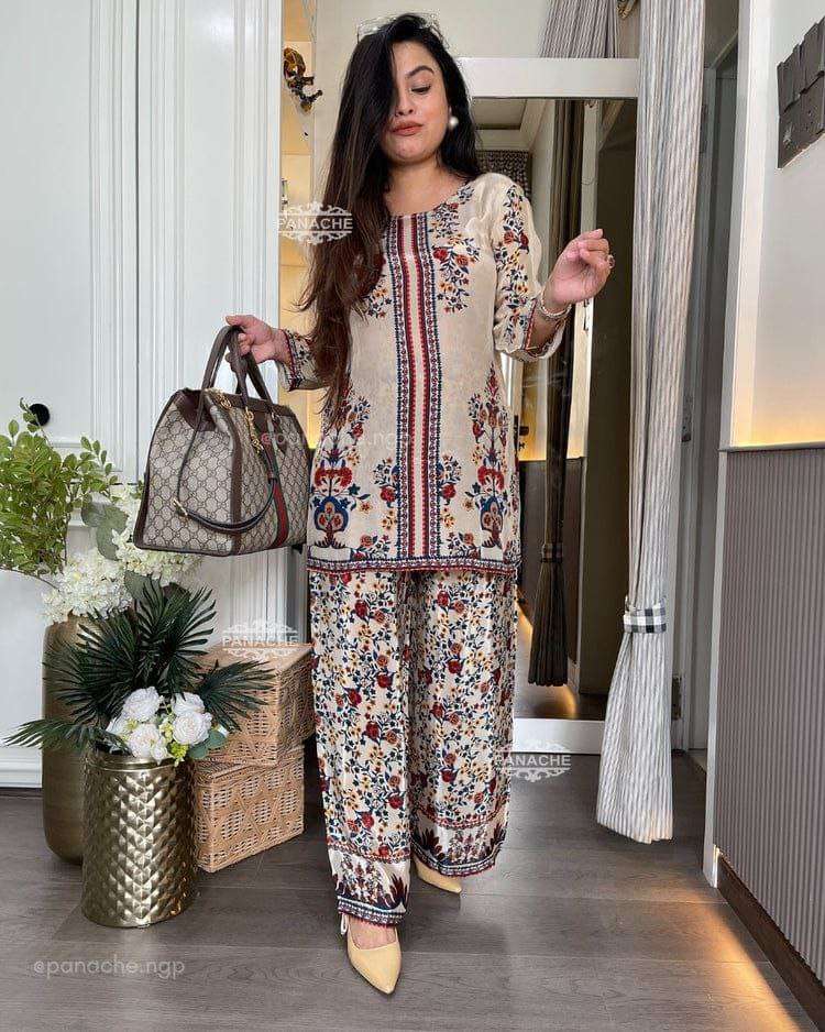 Premium Grey Digital Print Co-Ord Set – Elegant Comfort for Every Size