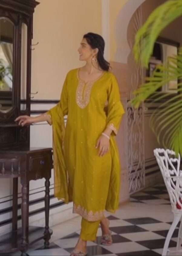 Comfortable and classy Kurta Pant Dupatta with beautiful handwork