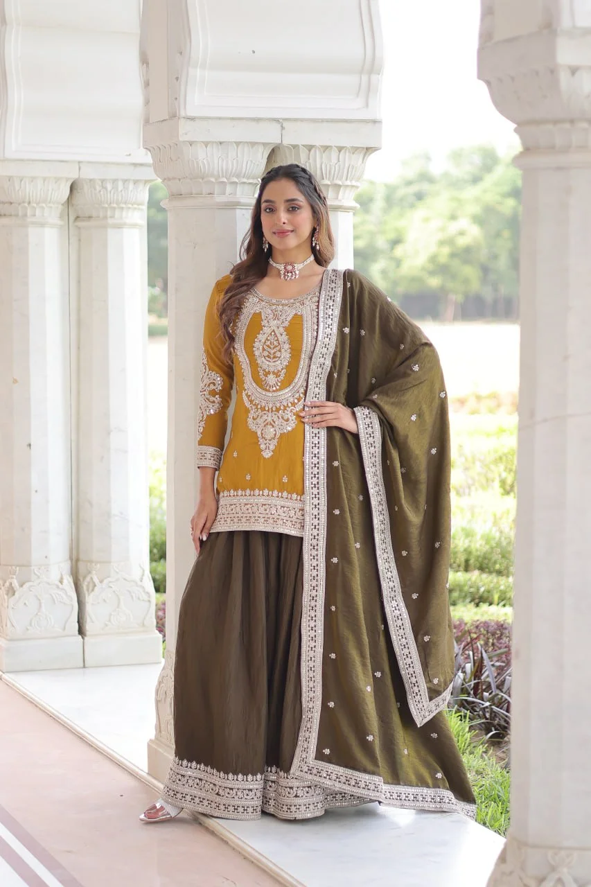 Designer NC Silk Top & Sharara Set with Zari Embroidery Dupatta