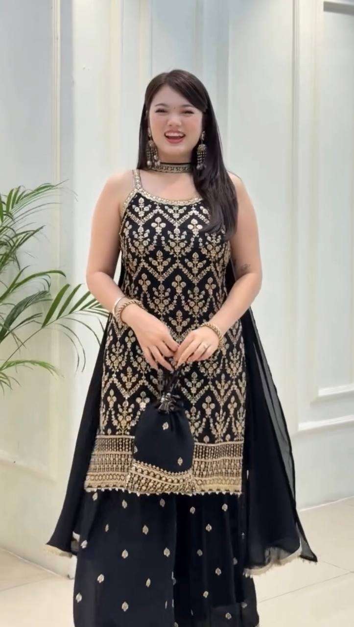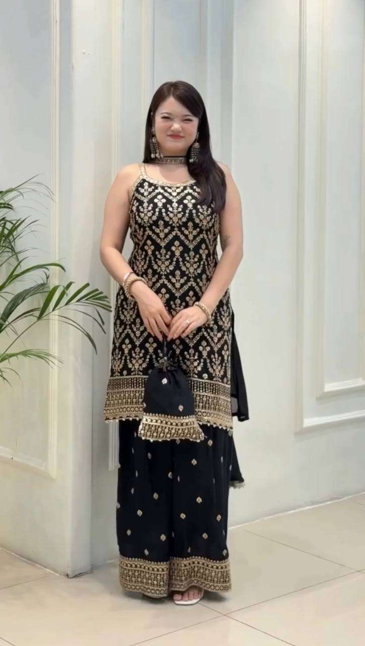 Stylish Black Heavy Faux Georgette Plazzo Set – Rich Embroidery & Sequence Work