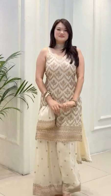 Elegant White Embroidered Plazzo Set – Premium Faux Georgette with Sequence Work