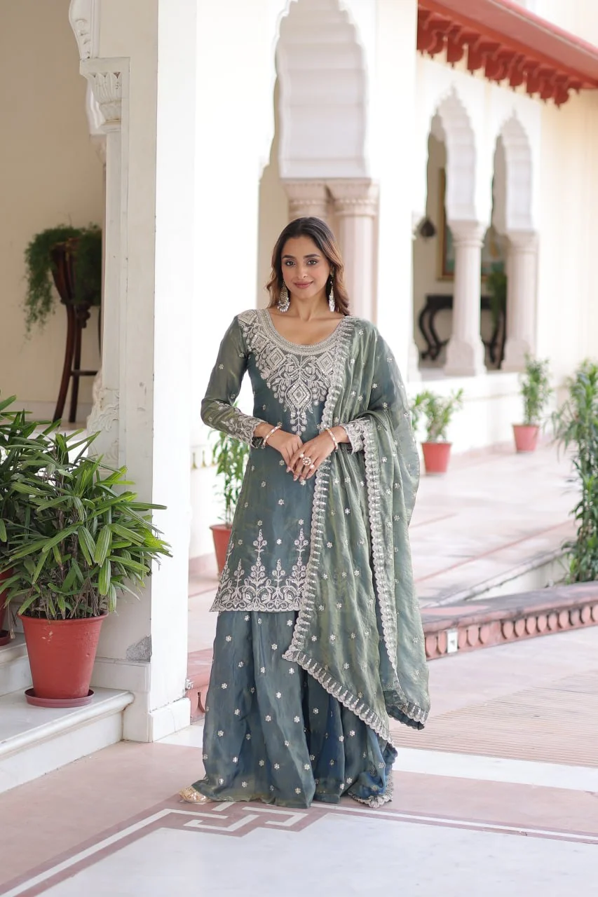 Ethnic 3 Piece Kurti Sharara Dupatta for Wedding and Festive Gatherings