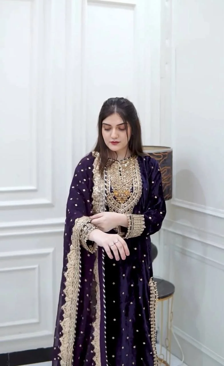 Designer Velvet Embroidery Suit with Matching Velvet Dupatta