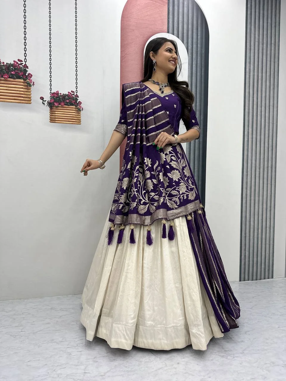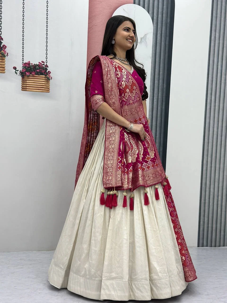 Designer Festive Set : Silk Lehenga Blouse With Fancy Dupatta