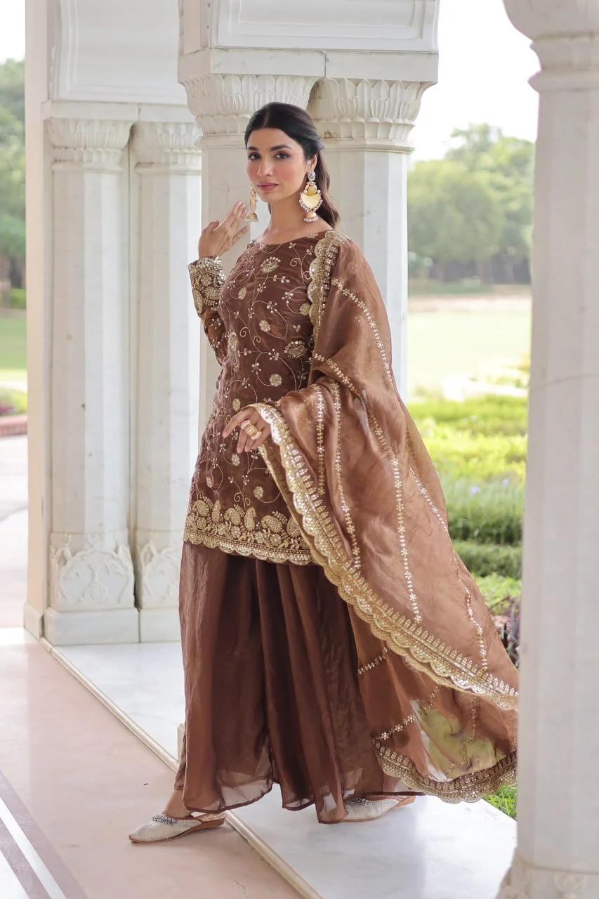 Luxe Fendy Sharara Set with Rich Zari Sequence Dupatta