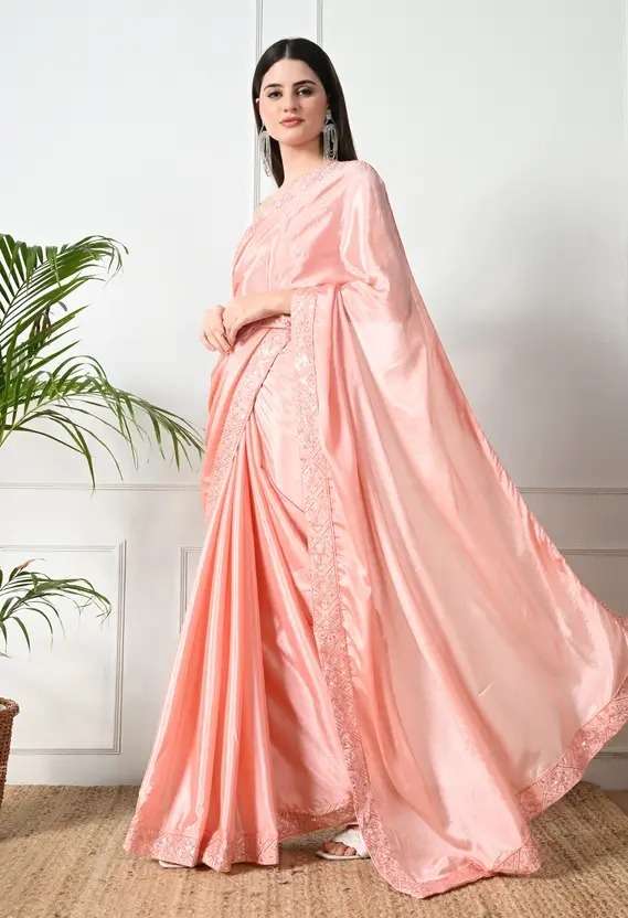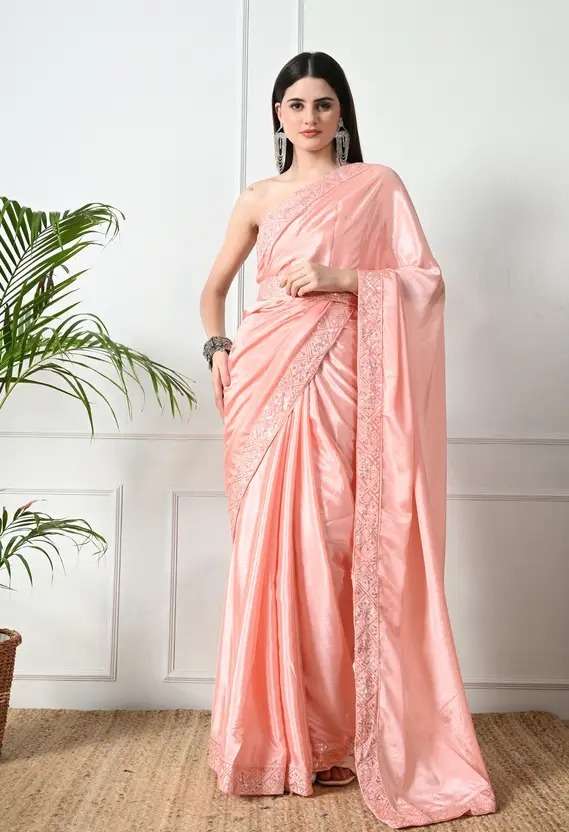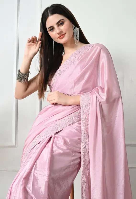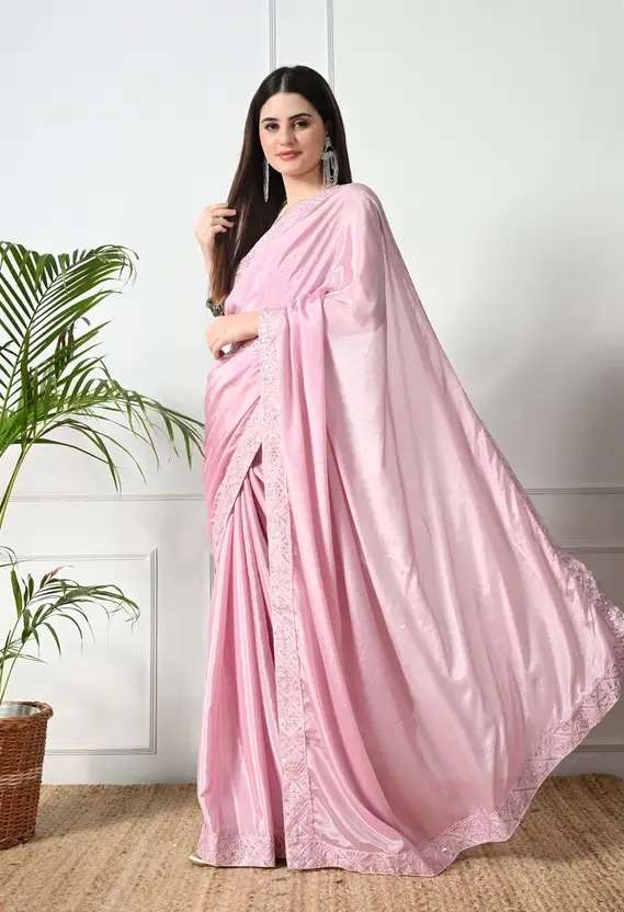 Elegant Pink Embroidered Bollywood Chiffon Saree – Party & Wedding Ready