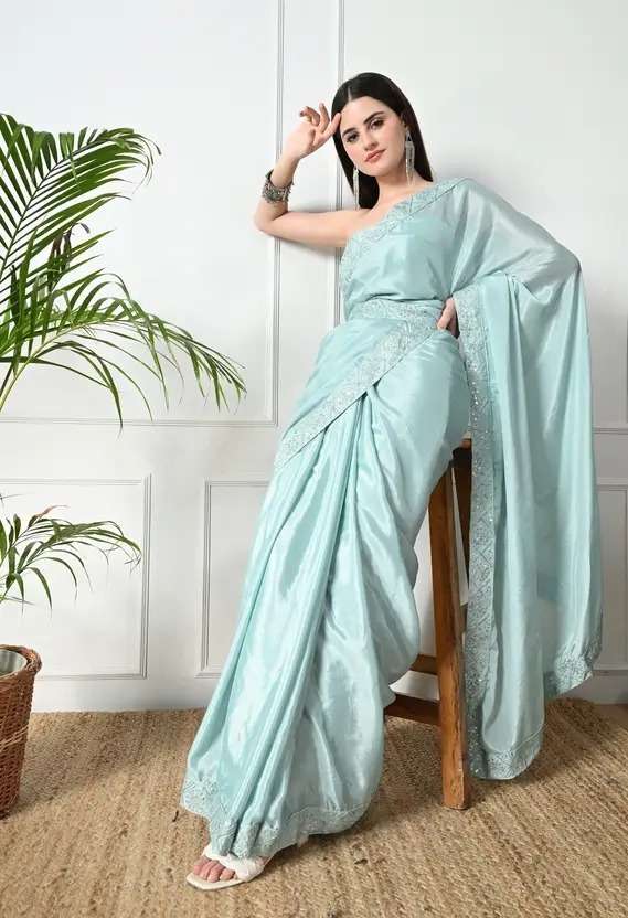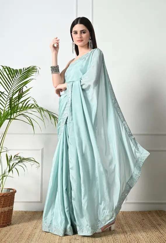 Bollywood Style Sky Blue Saree with Embroidery Work – Grace Redefined