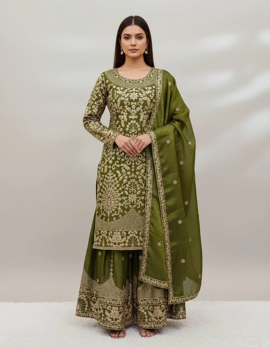 Heavy Look Wedding Occasion Green Kurti Gharara in every Size