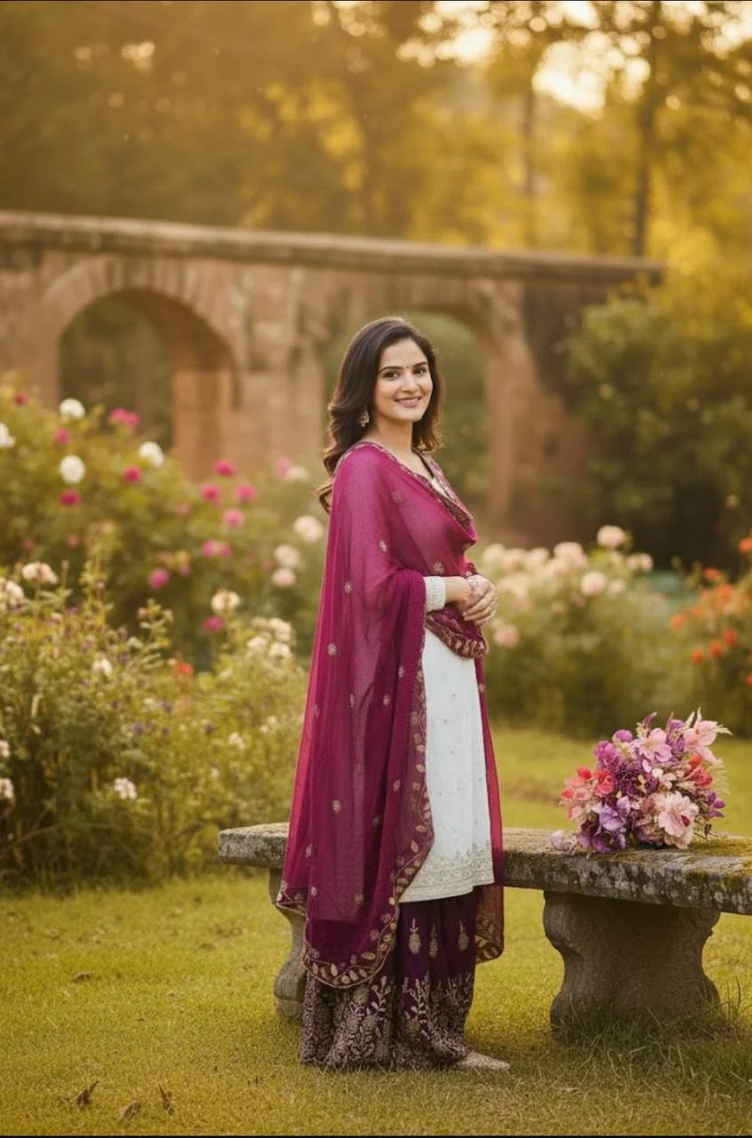 Elegant Simmer Silk Sharara Set – Thread & Sequence Embroidered Top with Dupatta