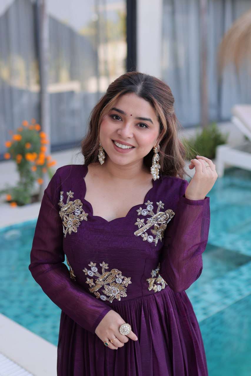 Royal Faux Georgette Sequins & Zari Embroidered Layered Gown