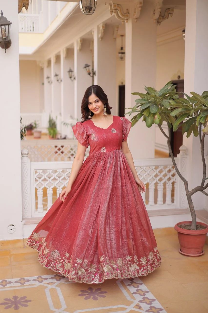 Graceful Four-Layer Frill Gown with Rich Zari & Sequins Design