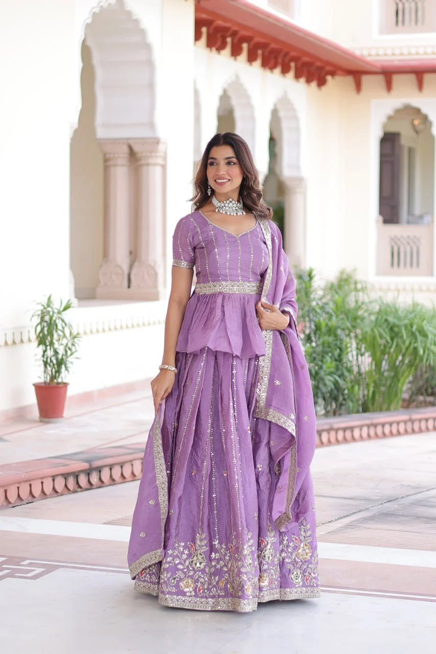 Designer Chinon Silk Lehenga Choli with Heavy Paip Sequence & Cutwork Dupatta