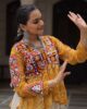 Be the first to review “Mustard Bandhani & Kutchi Gamthi Patchwork Navratri Lehenga”
