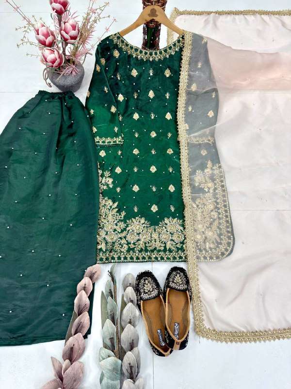 Boutique Style Green GMY Silk Handwork Kurta Pant Set