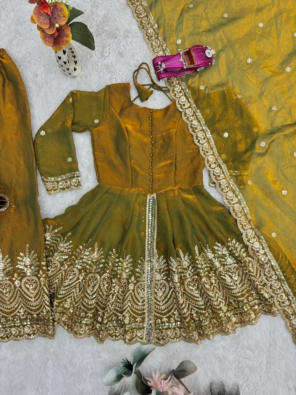 Chic Festive Wear Plazo Set – Two-Tone Fandy Silk with Real Mirror Work