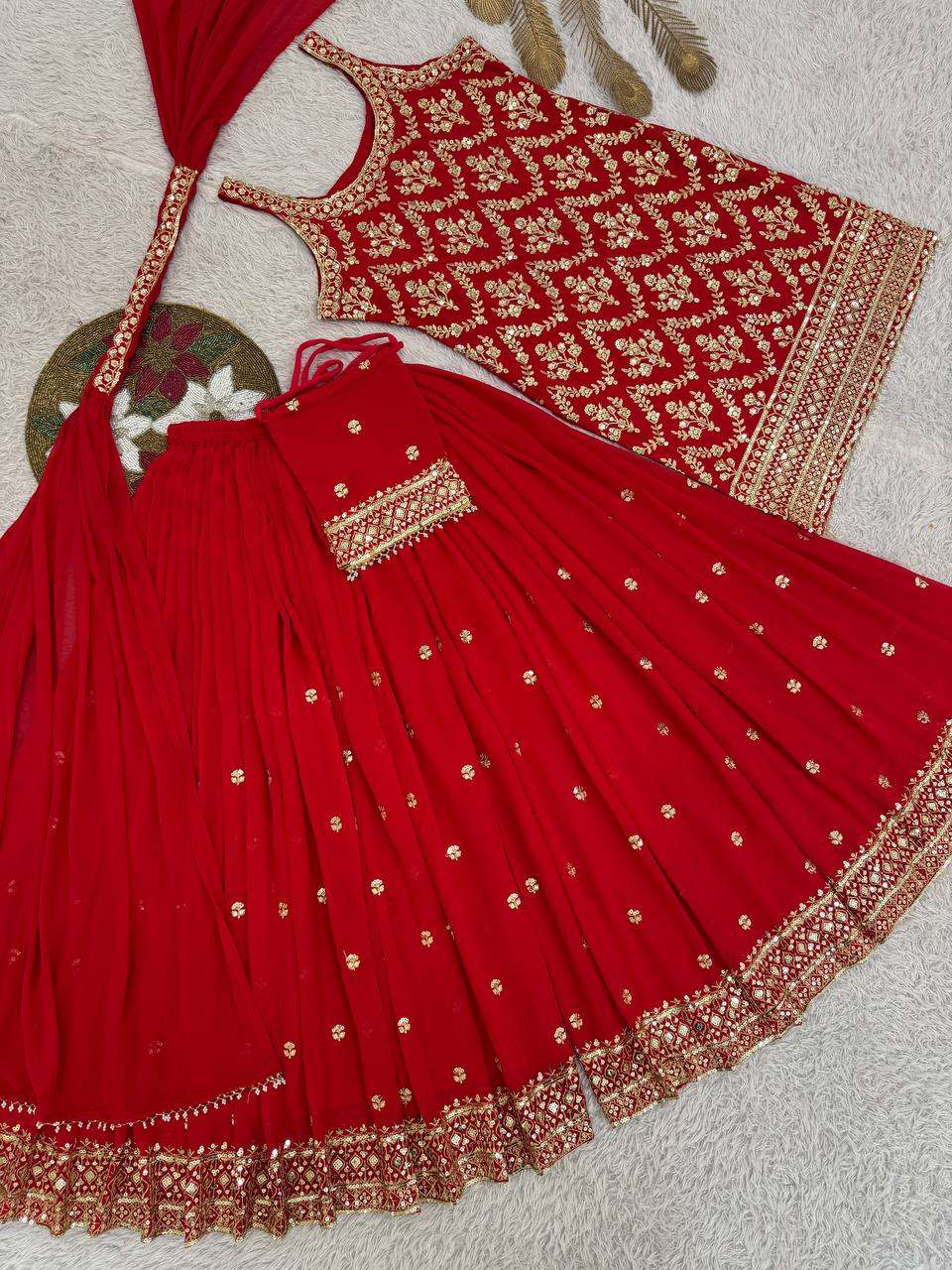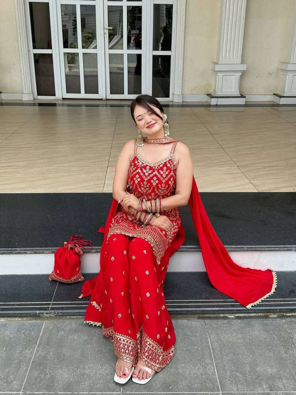Classic Red Premium Plazzo Set – Embroidered Faux Georgette with Sequence Detailing