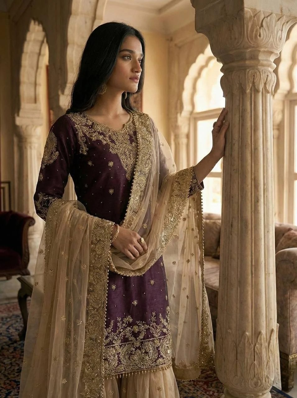 Work : 3mm Embroidery Coding Dori-Sequence Work And Dimond with Rivet Moti Work