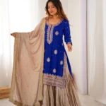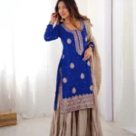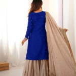 Be the first to review “Elegant Blue Kurti Sharara Set with Sequence & Pearl Work”