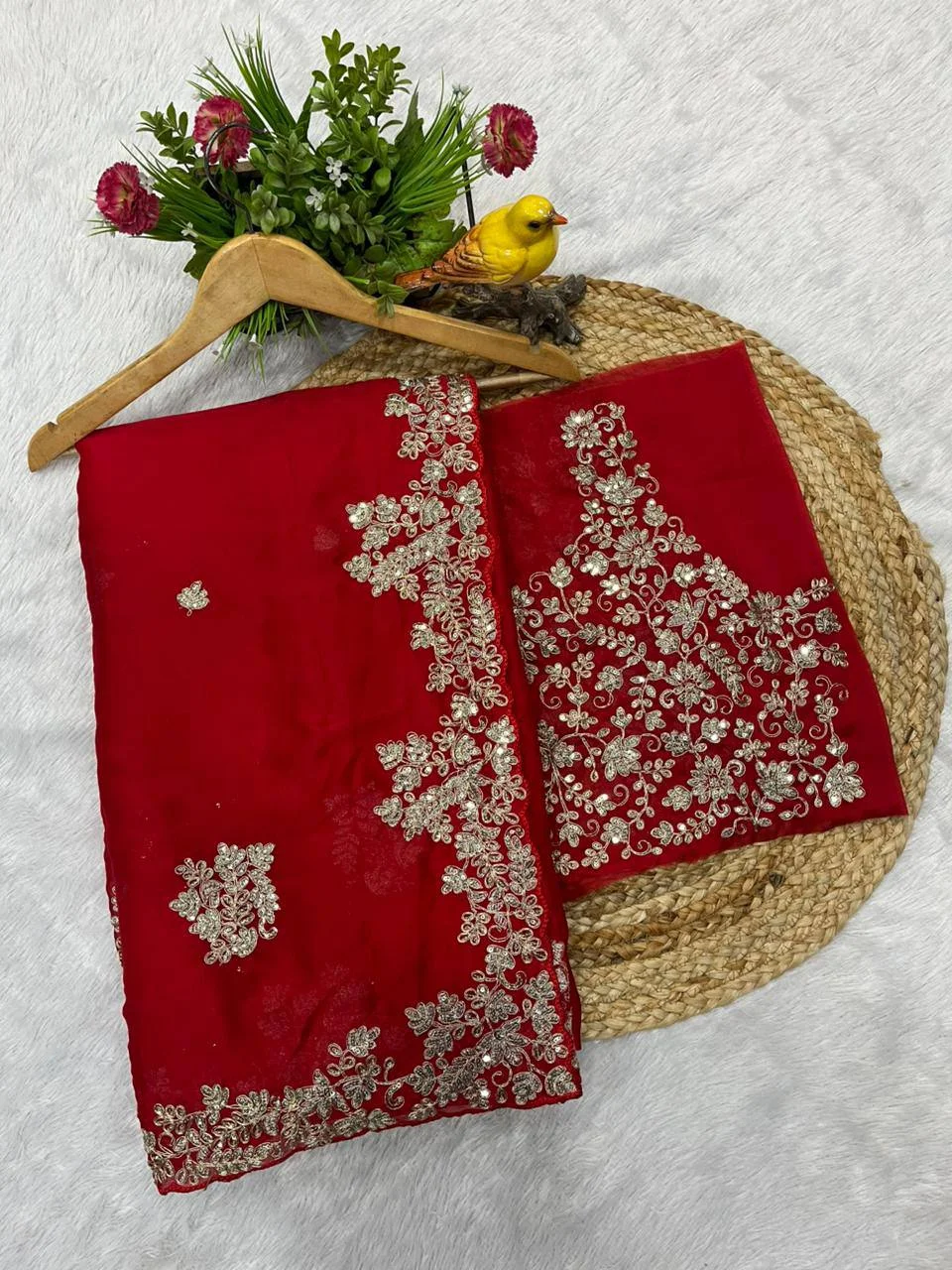 Embroidered Rangoli Silk Saree with Stylish Cutwork Border – Unstitched Blouse