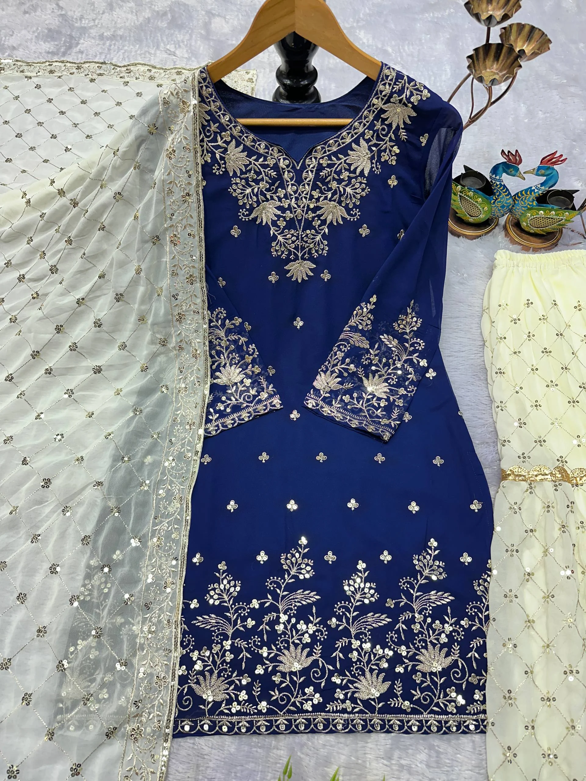 Be the first to review “Graceful Blue Georgette Sharara and Top with Rich Lace Work Dupatta”