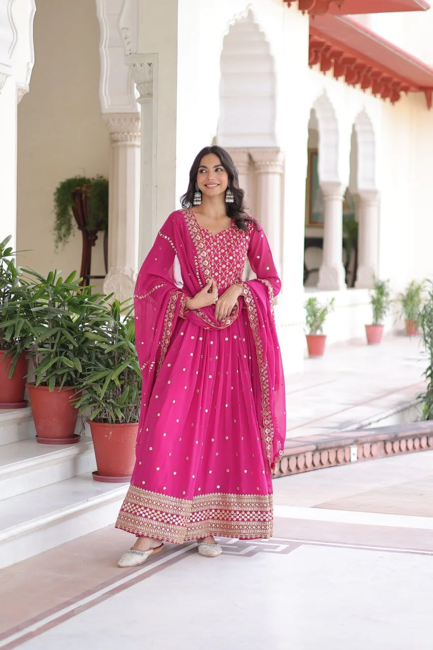 Heavy Sequence & Zari Embroidery Gown With Full Sleeves & Designer Dupatta