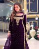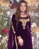 Luxury Purple Velvet Ensemble – Fully Stitched Party Wear with Embroidered Net Dupatta