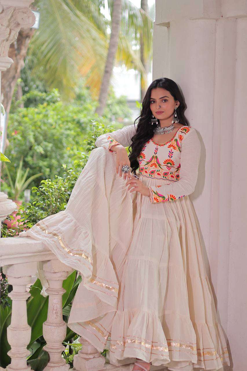 Off-White Kora Cotton Gown: Multi-Thread Navratri Edition