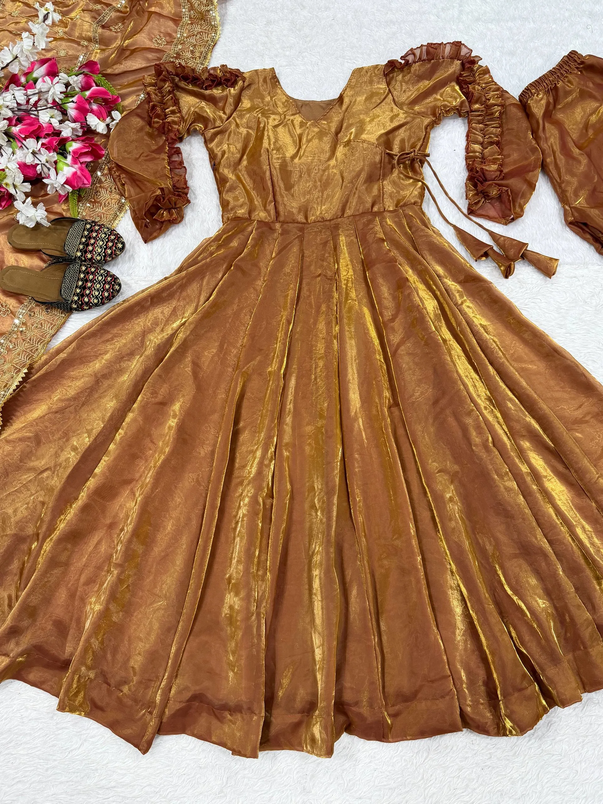 Premium Fendy Silk Anarkali Set with Elegant Flair & Embroidery