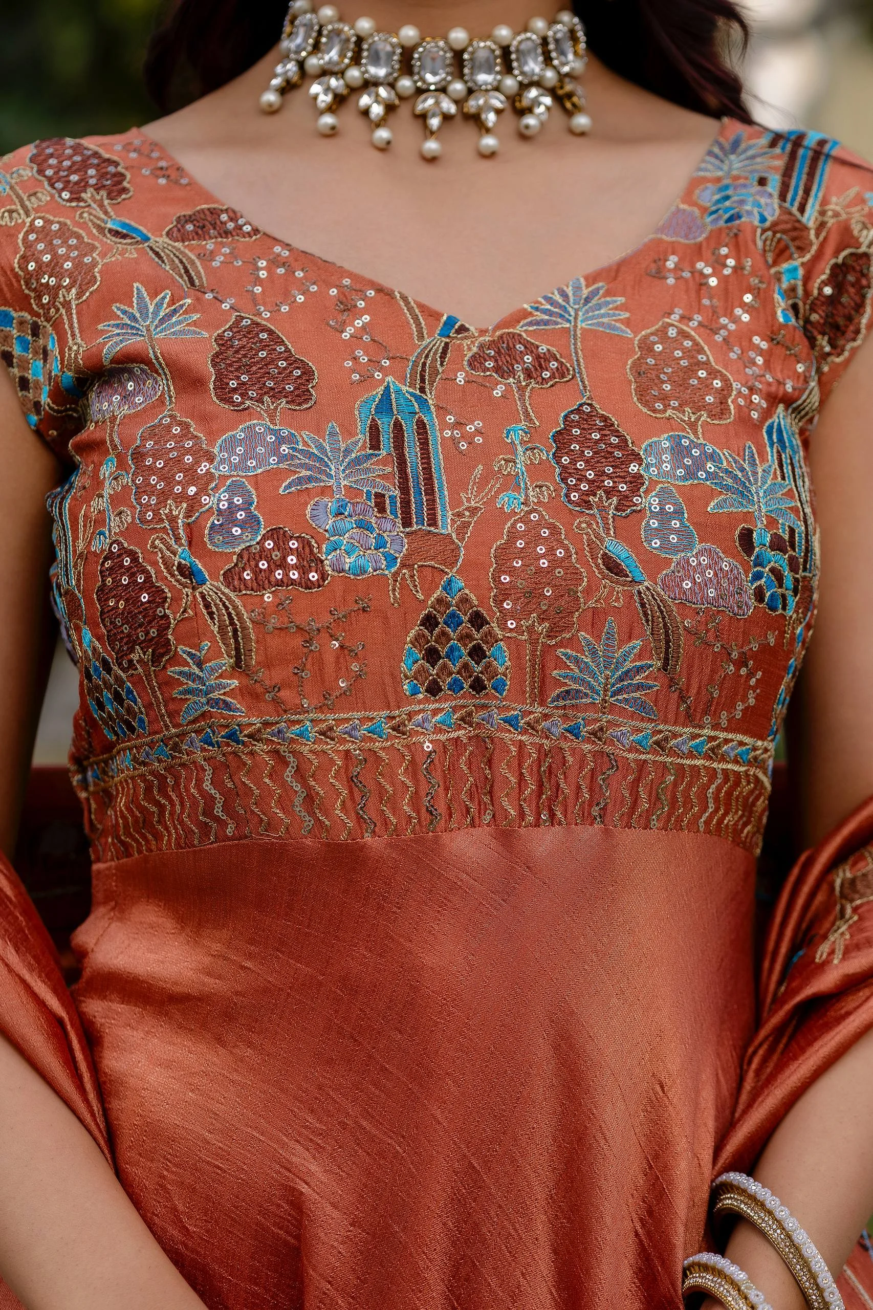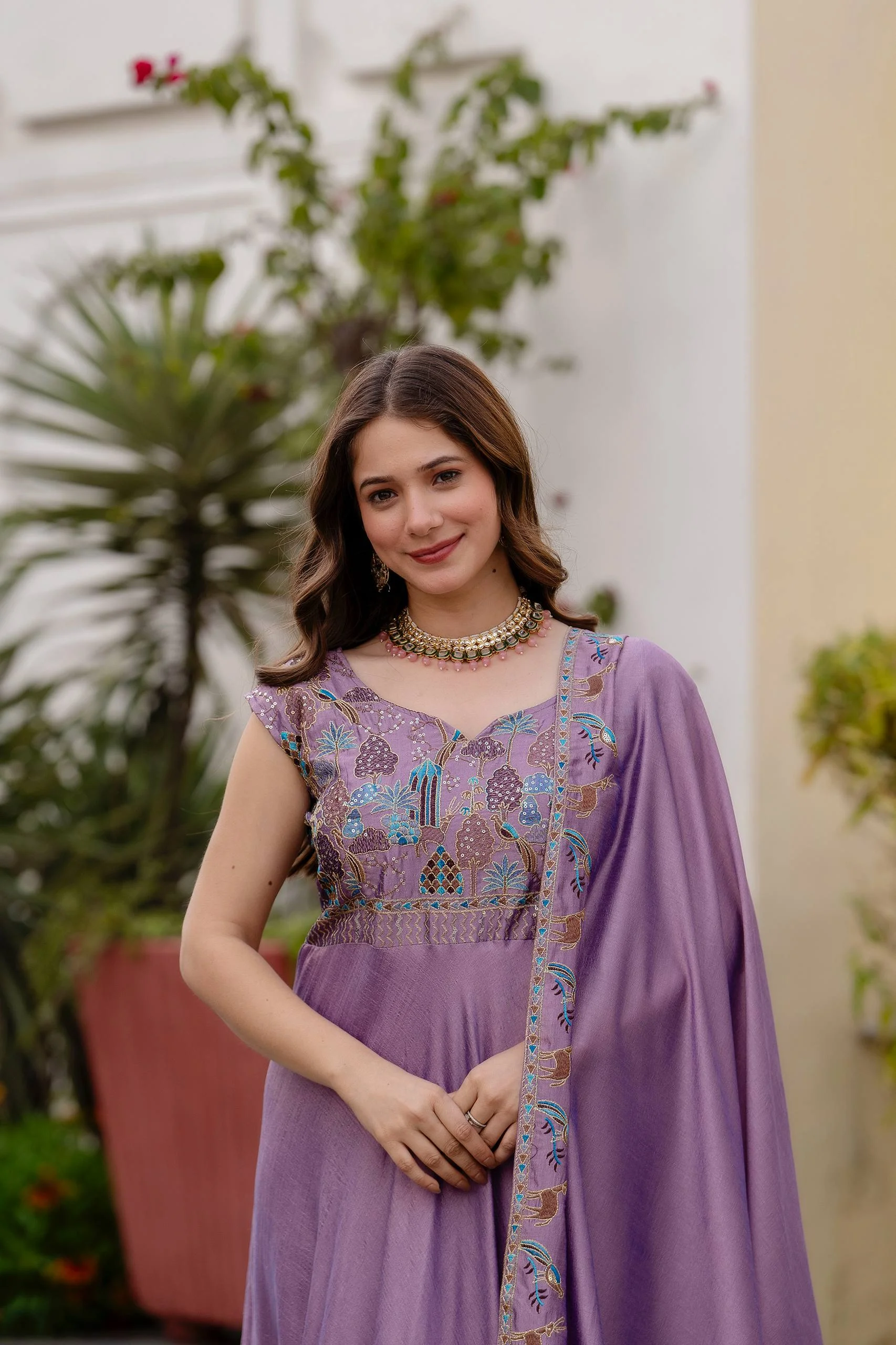 Premium Party Wear Vichitra Silk Gown with Embroidered Dupatta