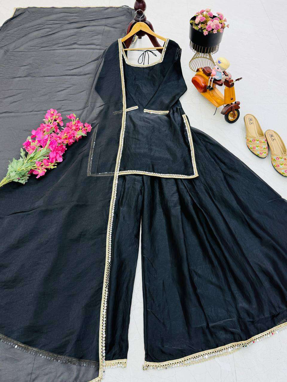 Royal Black Designer Plazzo Suit with Mirror Detailing – Eid Special