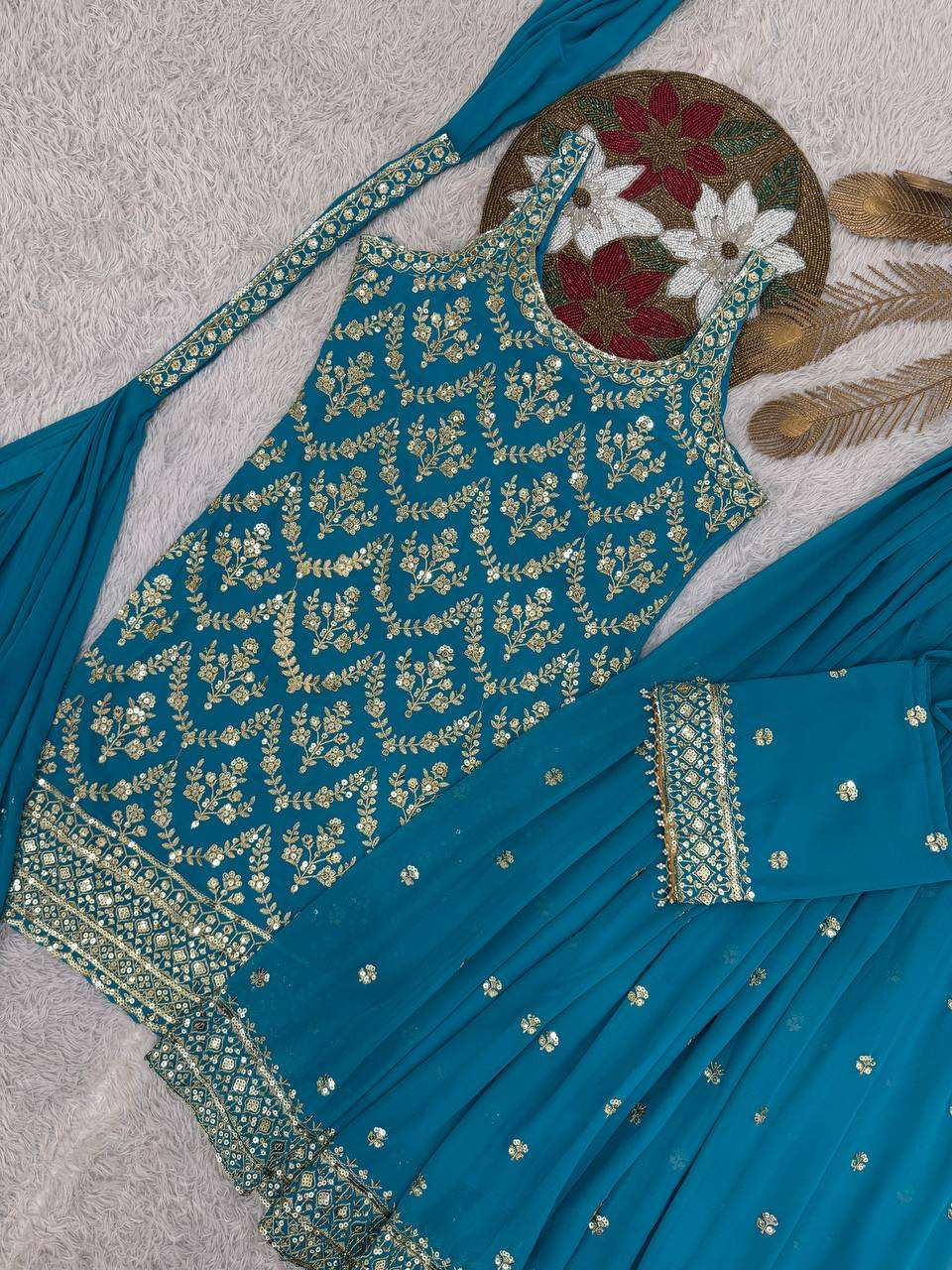 Royal Blue Faux Georgette Embroidered Plazzo Set – Heavy Sequence Work