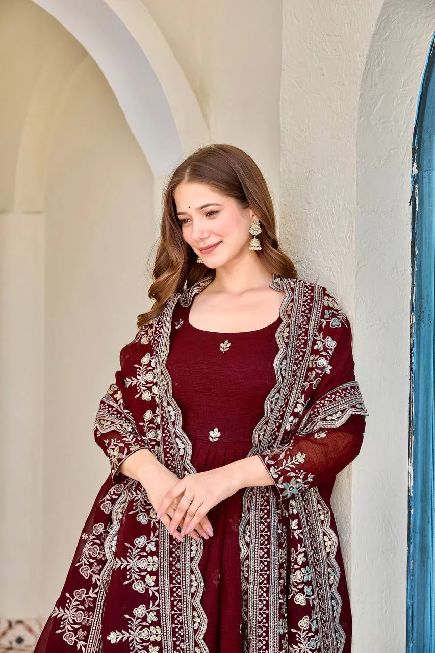 Royal Crunchy Silk Anarkali Outfit with Thread & Sequin Embroidery