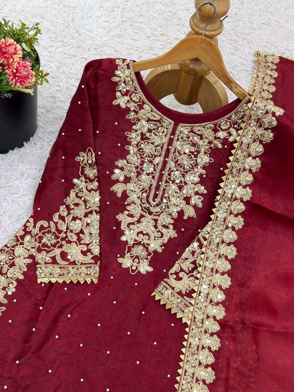 Be the first to review “Stunning Red Traditional Wear Kurti Plazzo Set for Eid Glam”