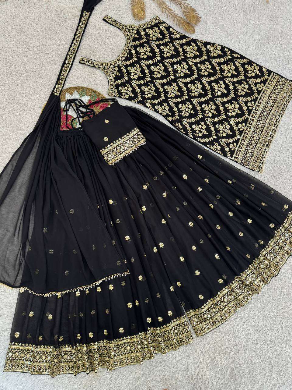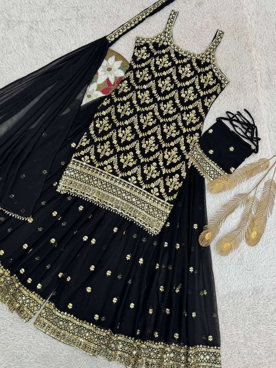 Stylish Black Heavy Faux Georgette Plazzo Set – Rich Embroidery & Sequence Work
