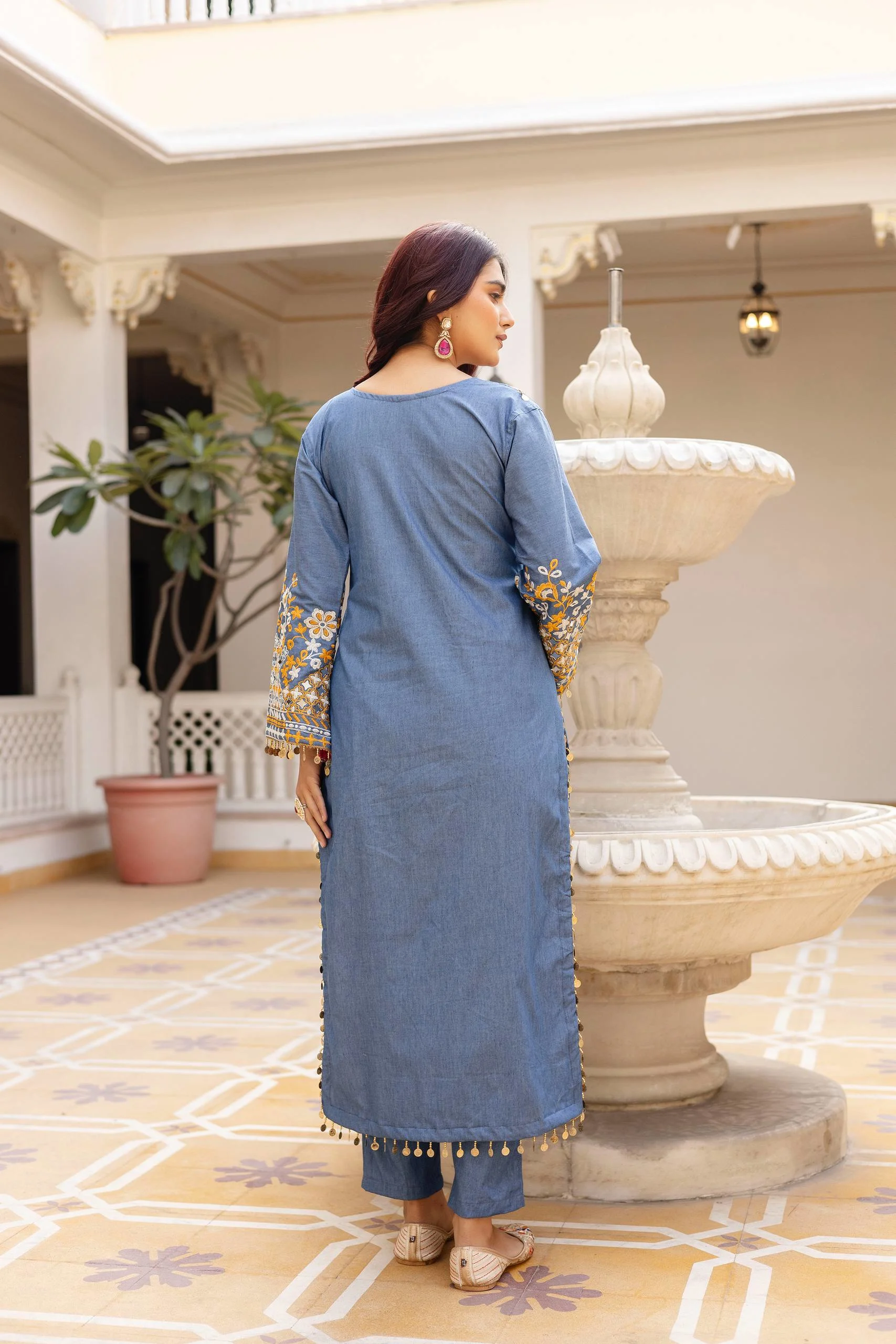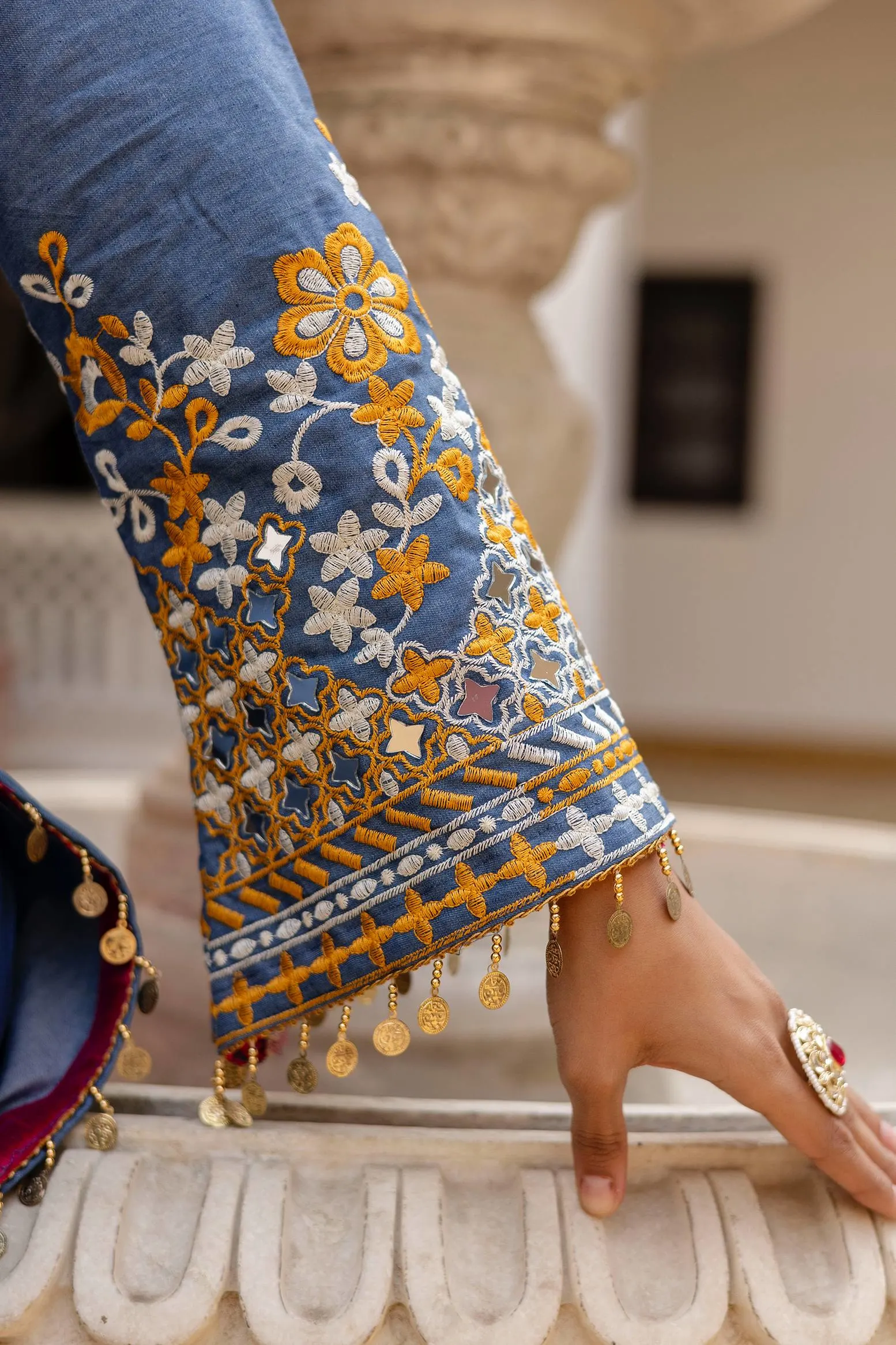 Work:Â HEAVY EMBROIDERY, REAL MIRROR AND LACE WORK