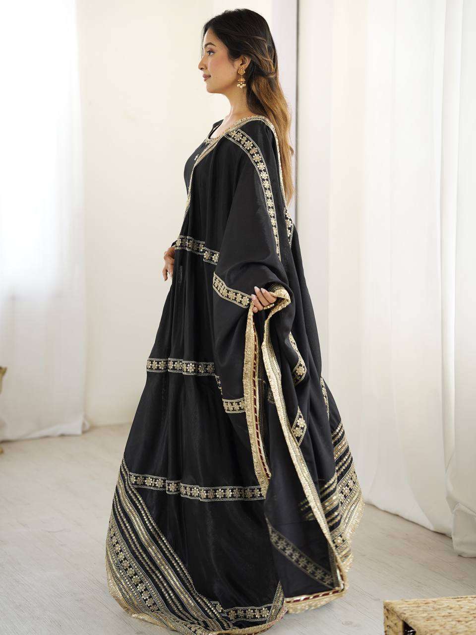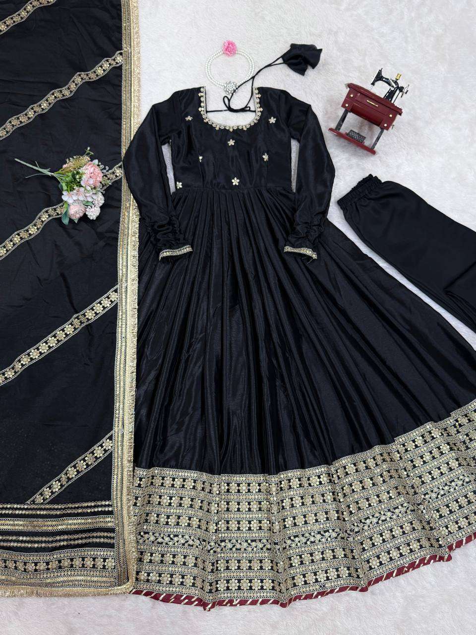 Thread & Sequence Work Anarkali Dress in Chinon Silk